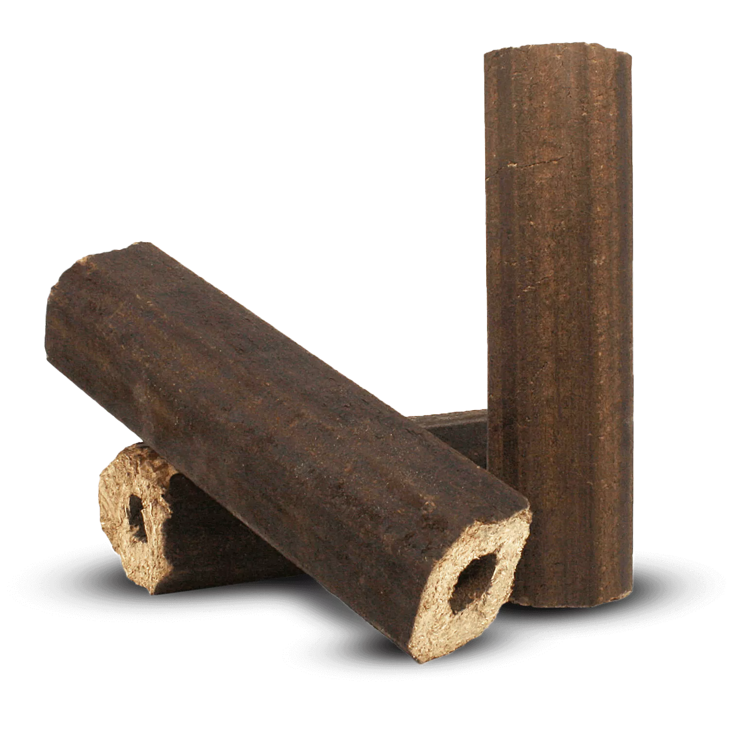 Le trou de tirage favorise la circulation de l’air dans la chambre de combustion et permet une combustion contrôlée. Avec un pouvoir calorifique ≥ 5,0 kWh/kg et une humidité résiduelle ≤ 5 %, les briquettes conviennent aux poêles-cheminées, aux gazéificateurs à bois et aux autres foyers homologués, conformément aux instructions du fabricant.