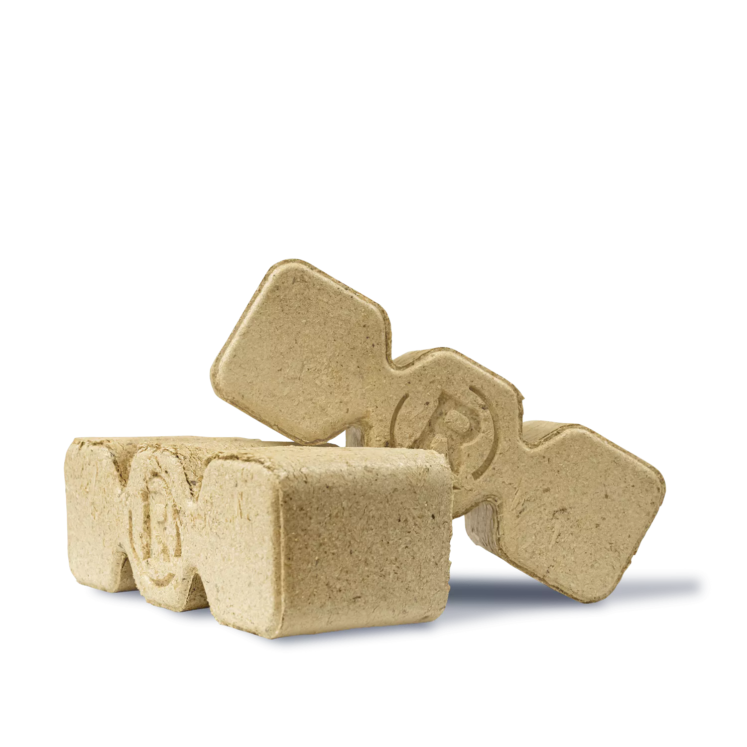 Avec un pouvoir calorifique ≥ 4,6 kWh/kg, une humidité résiduelle ≤ 8 % et une teneur en cendres ≤ 0,5 %, les briquettes conviennent aux poêles fermés, aux chaudières et aux gazéificateurs à bois conformément aux spécifications du fabricant.