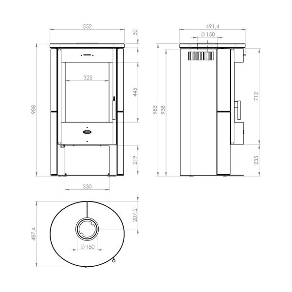 • Raccordement du tuyau de fumée : en haut Ø 150 mm