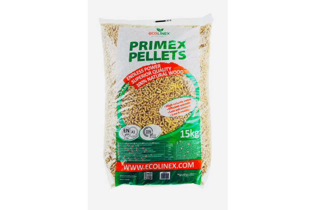 Granulés de bois PRIMEX (certifiés ENplus A1 & DINplus) en bois de pin 100 % sans additifs. Pouvoir calorifique > 5,1 kWh/kg, teneur en cendres < 0,3 %, humidité < 5 %. Convient aux poêles à pellets et aux chauffages à pellets.