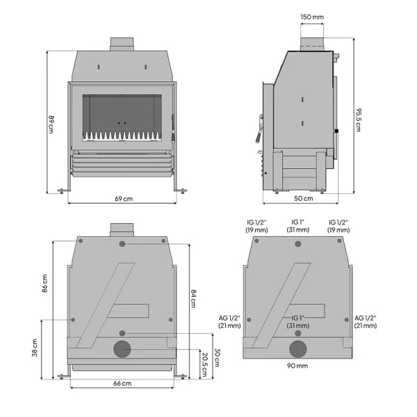L’insert à bois Bruno Malaga II 6,9 kW est un système de chauffage hydro moderne conçu pour être raccordé à un circuit de chauffage central. Grâce à son échangeur de chaleur intégré, il permet de chauffer à la fois votre habitation et votre réseau d’eau chaude.