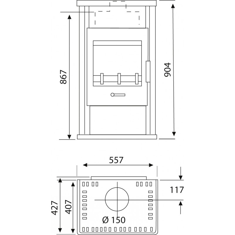 Le foyer est revêtu d’un matériau résistant à la chaleur et dispose d’un bac à cendres intégré. La porte de la chambre de combustion à fermeture automatique augmente la sécurité de fonctionnement. Une arrivée d’air primaire et secondaire réglable favorise une combustion contrôlée.