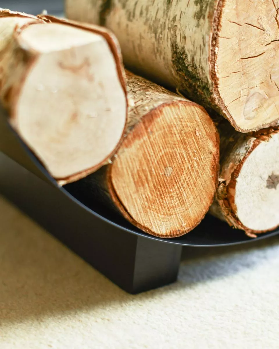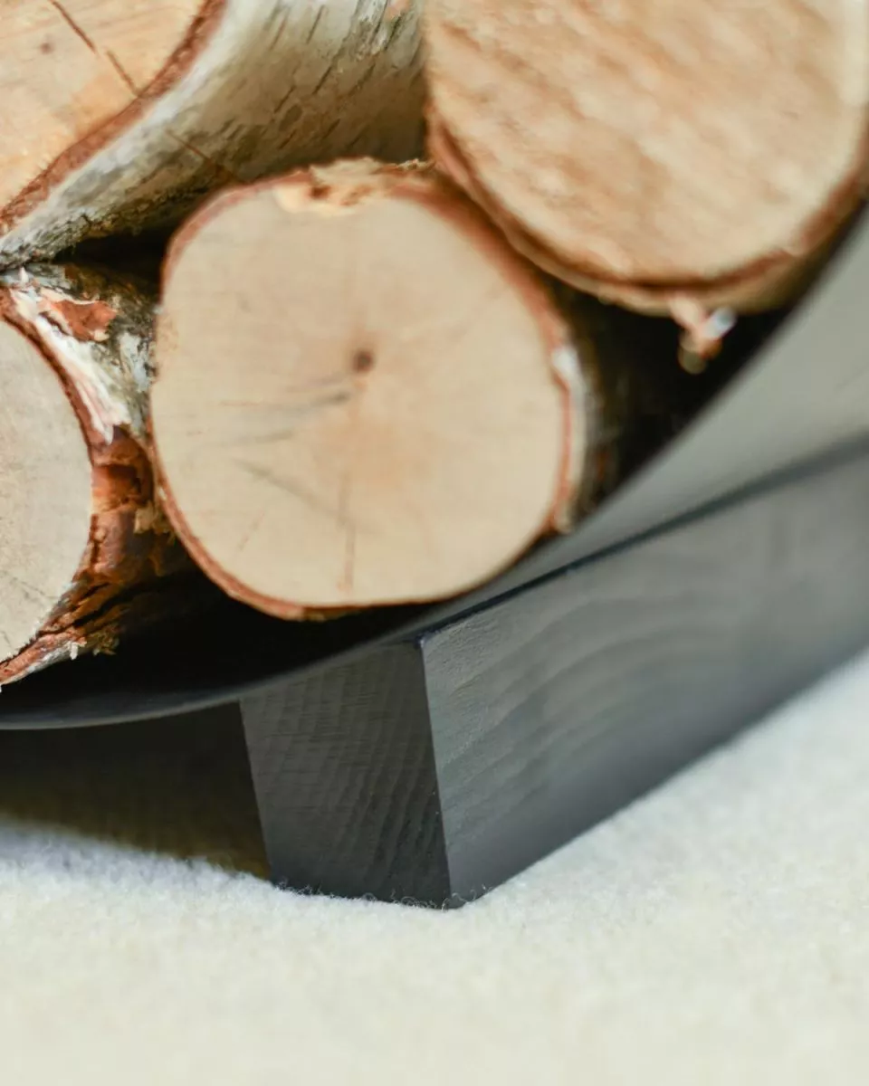 Porte-bûches minimaliste en forme de demi-lune – élégant & fonctionnel
